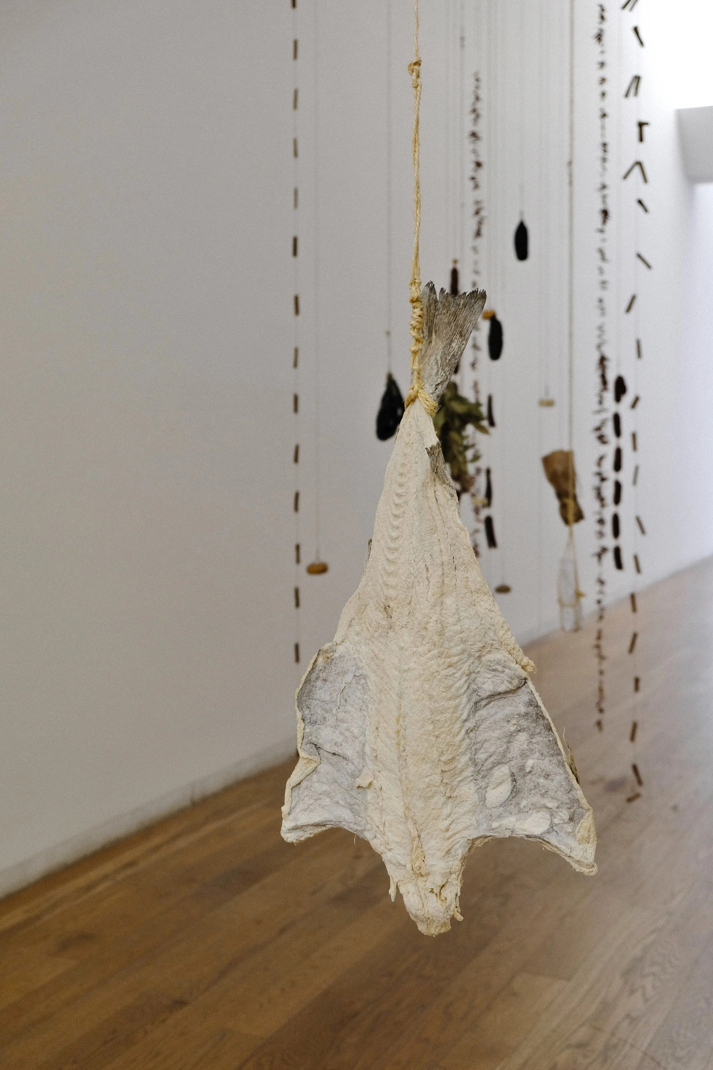 In every room clusters of flowers in different stages of decay were scattered around the floor. These quite striking sculptures were made from hand moulded wax. Another interesting piece featured an old petrol pump petrified in stone, a comment on the modern use and reliance on fossil fuels. We were also interested in the installation that commented on food distribution, rationing and insecurity by the multidisciplinary artist Carla Filipe. Traditional Portuguese sweets and food, like bacalhau, were suspended from the ceiling, creating a sensory jungle you could walk through.